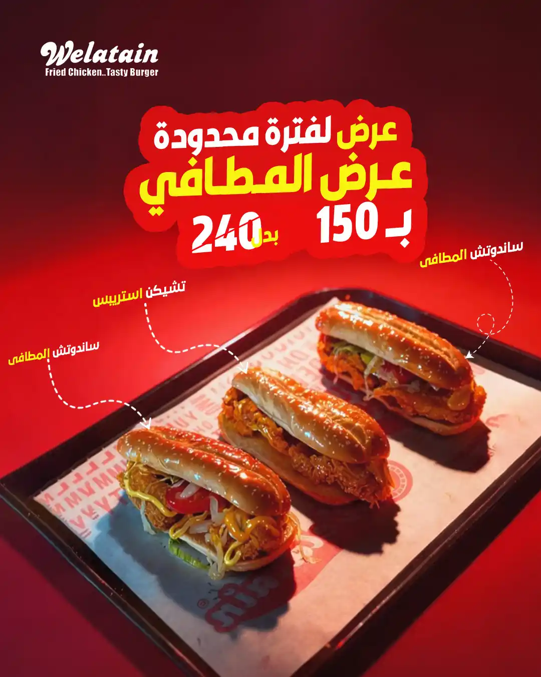 ساندوتش كرسبي دوبل، ساندوتش حريقة دوبل، 2 ساندويتش تشكن كلاسيك، بطاطس محمرة كبير